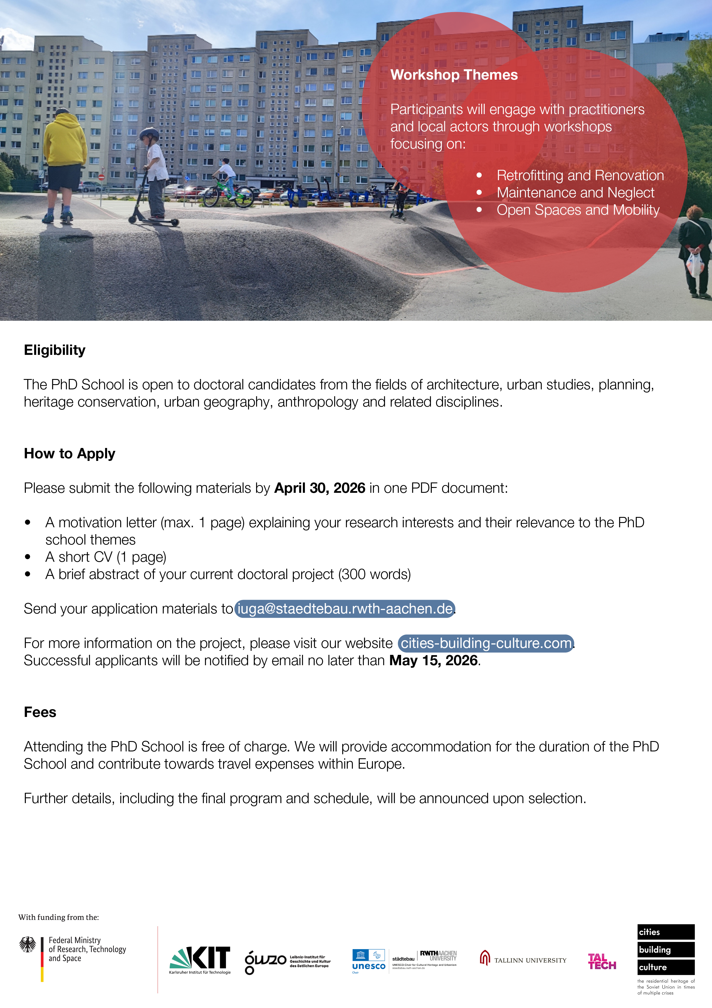 The PhD School is open to doctoral candidates from the fields of architecture, urban studies, planning, heritage conservation, urban geography, anthropology and related disciplines.
