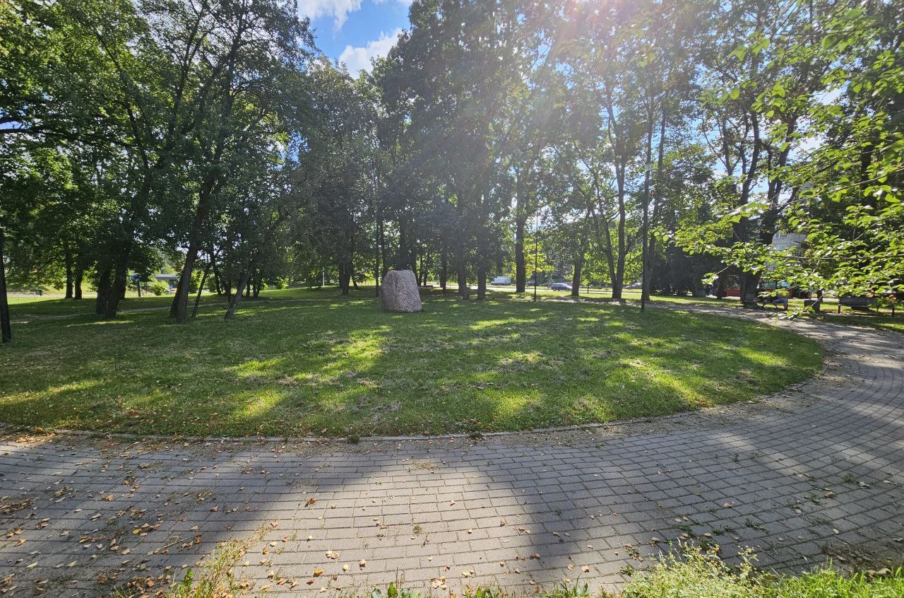 The last point I would like to highlight is the creation of local places of memory. Alongside classical memorial plaques in Lazdynai, we also encounter a slightly unconventional way of commemorating a local personality. The square of Eugenija Šimkūnaitė is devoted to the Lithuanian pharmacist, but here it is referring to other side of her activity, as she was also an herbalist. A stone in the middle of the square recalls her turn to folk medicine. Around it, twelve cherry trees are planted according to Šimkūnaitė’s wishes, and their well-being is the responsibility of the local community. It is also worth noting that she was not a “big” political figure but still a person who left a mark on the history of the district.