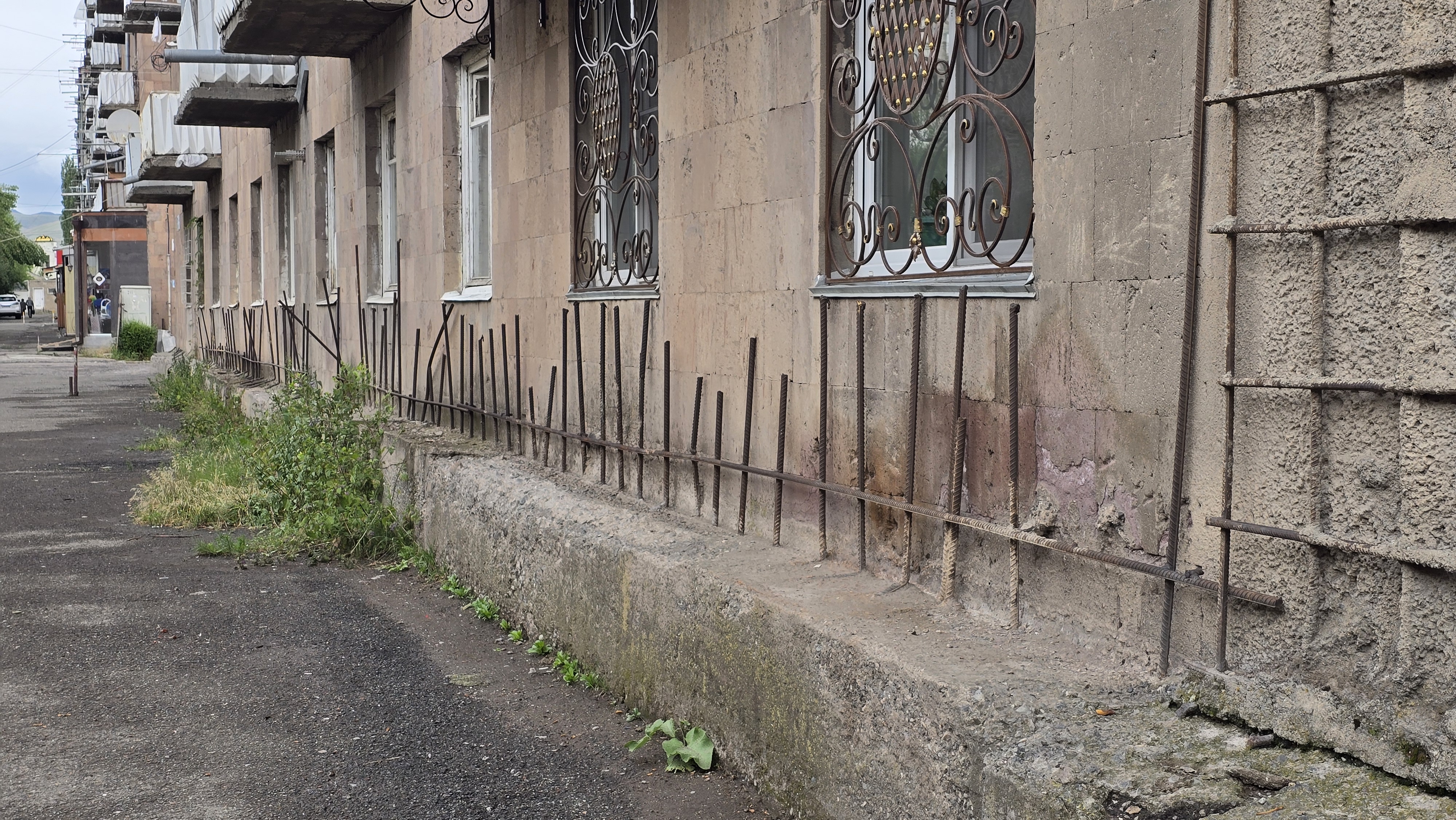 Fig.04. Unfinished reinforcement of the Soviet residential building, started after the 1988 Spitak earthquake and stopped after the collapse of the USSR. Photo by Elena Batunova 2025