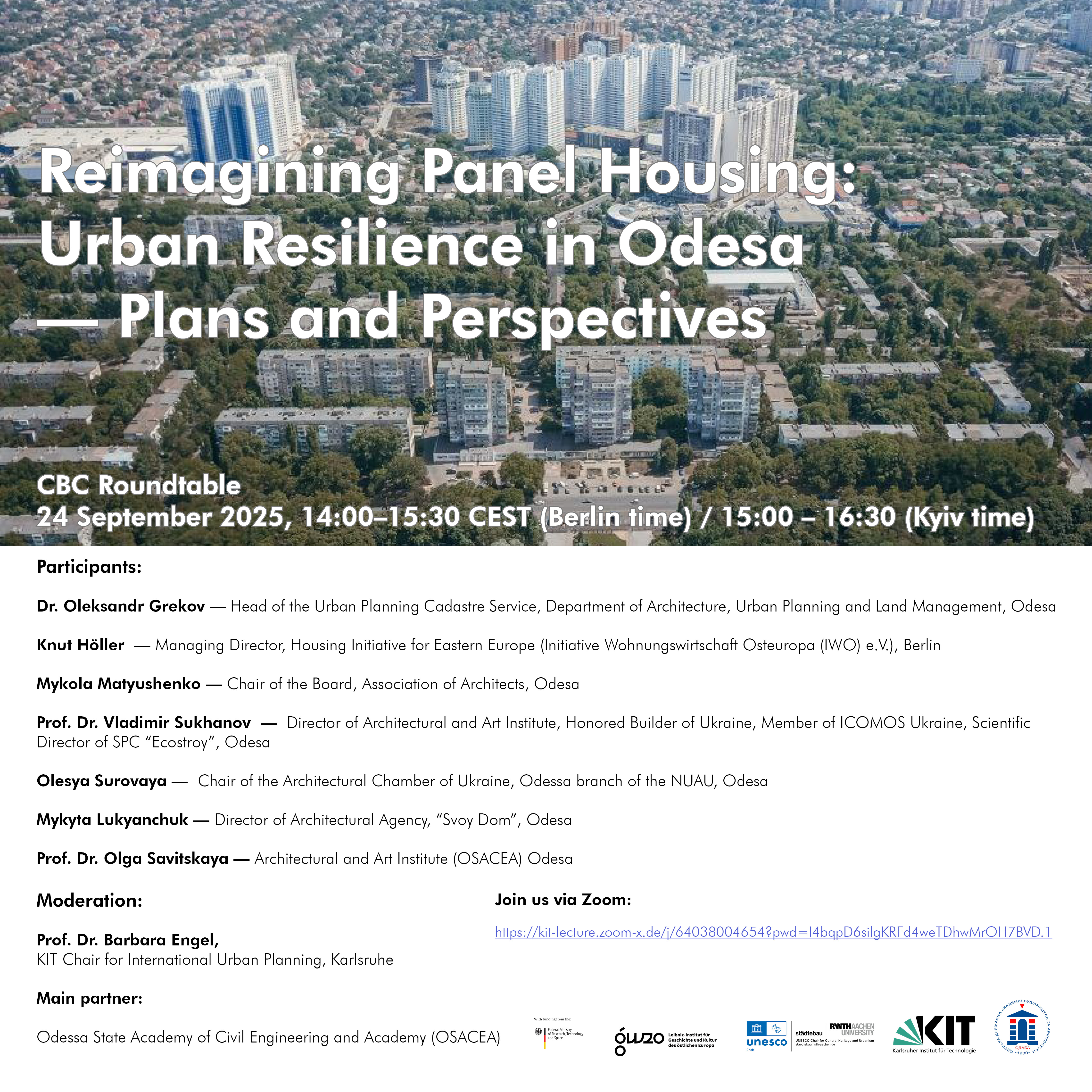 This roundtable fosters an open dialogue among experts, practitioners, and local stakeholders, focusing on practical solutions and shared concerns. We will examine current urban and housing conditions in Odesa, the key challenges posed by ongoing military destruction, and the impacts on the built environment and communities. The discussion will also address policy gaps and local socio-political dynamics. Participants will share long-term strategies, grassroots initiatives, and case studies of urban resilience, housing recovery, and community-driven efforts in Odesa and across Ukraine.
